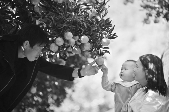 印山国家森林康养基地第八届芦柑采摘季启幕,不少游客和亲朋好友一起来采摘。
