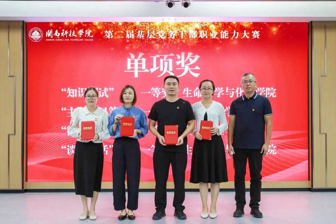 经过激烈角逐,生命科学与化学学院荣获团体一等奖,艺术设计学院、土木工程学院荣获团体二等奖;商学院、人文学院、计算机信息学院荣获团体三等奖。生命科学与化学学院、艺术设计学院、土木工程学院、生命科学与化学学院分别荣获“知识测试”“主题党日策划”“微党课”“谈心谈话”单项一等奖。