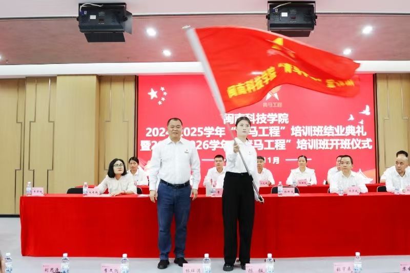 校党委书记李旭为2025-2026学年“青马工程”培训班授旗
